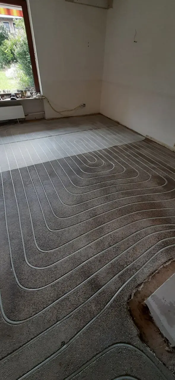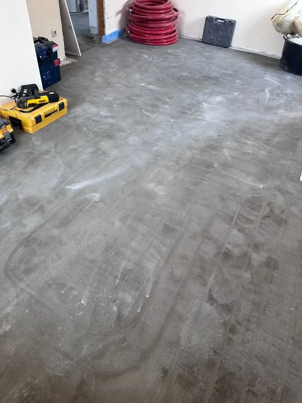 Zuerst fräsen wir Kanäle in den vorhandenen Estrich. Danach werden die Heizrohre verlegt und die Rillen sauber verschlossen. Dieses Verfahren ist ideal für Renovierungen – besonders im Altbau.