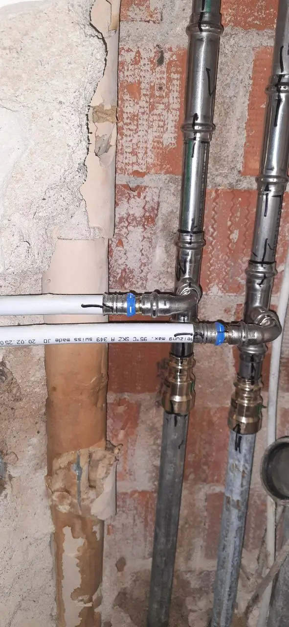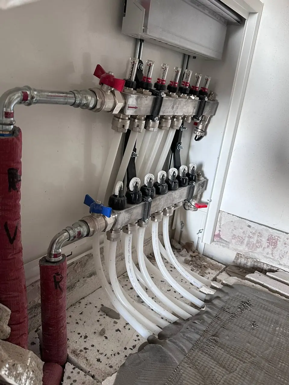 Flexible Heizrohre werden eingepasst und angeschlossen.